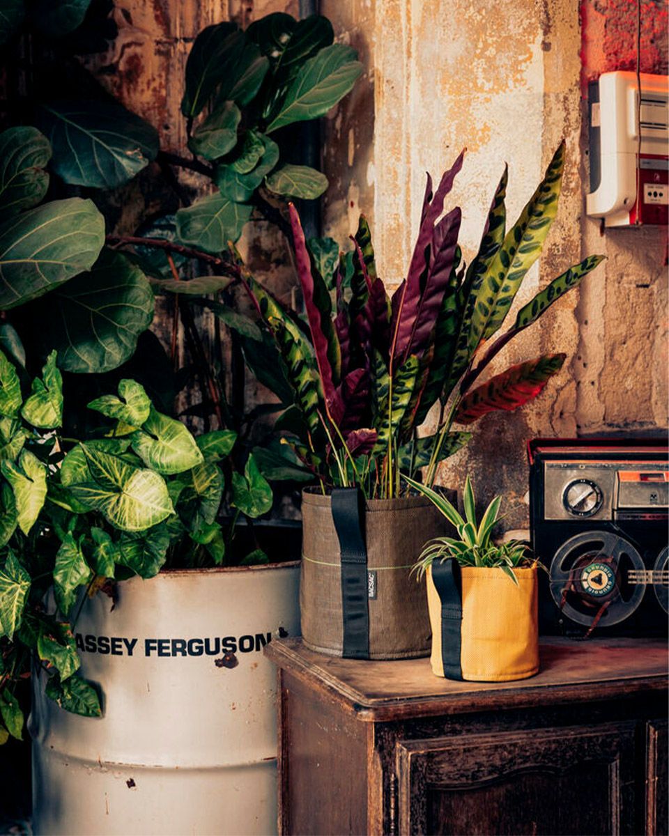 土木シートとして苗床や農場で使われているものと同じ素材を使用した植物用の鉢。