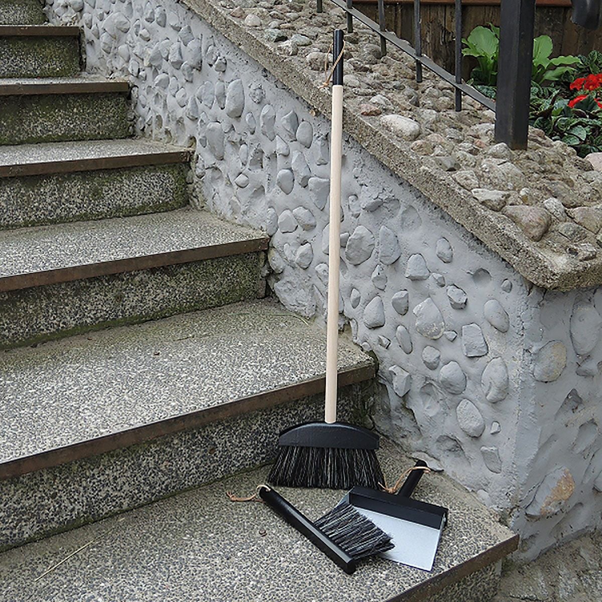 素材:ブルーム/パイン材・馬毛・ポリエステル、ハンドブラシ/バーチ材・馬毛・ポリエステル、ダストパン/バーチ材、ガルバリウム銅板