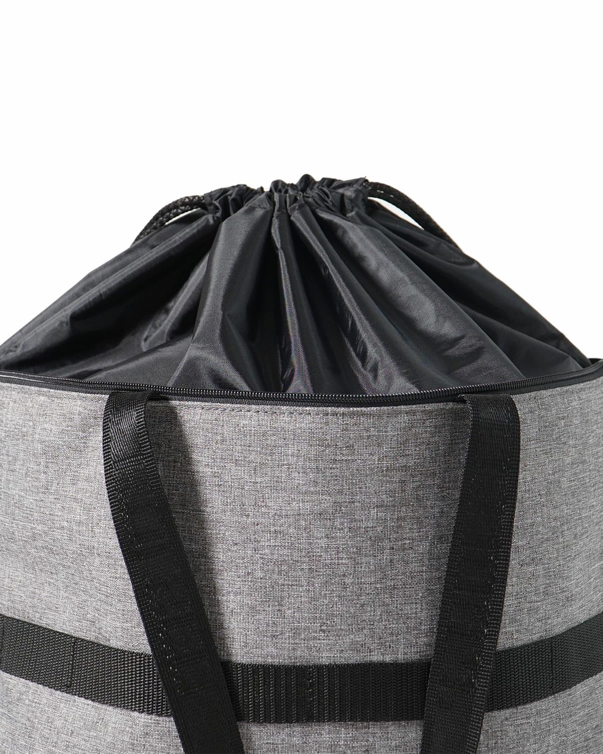 内側には万が一買いすぎてしまっても容量を増やすことができるように目隠しの巾着袋が付いており、週末のまとめ買いにも最適なサイズ感です。